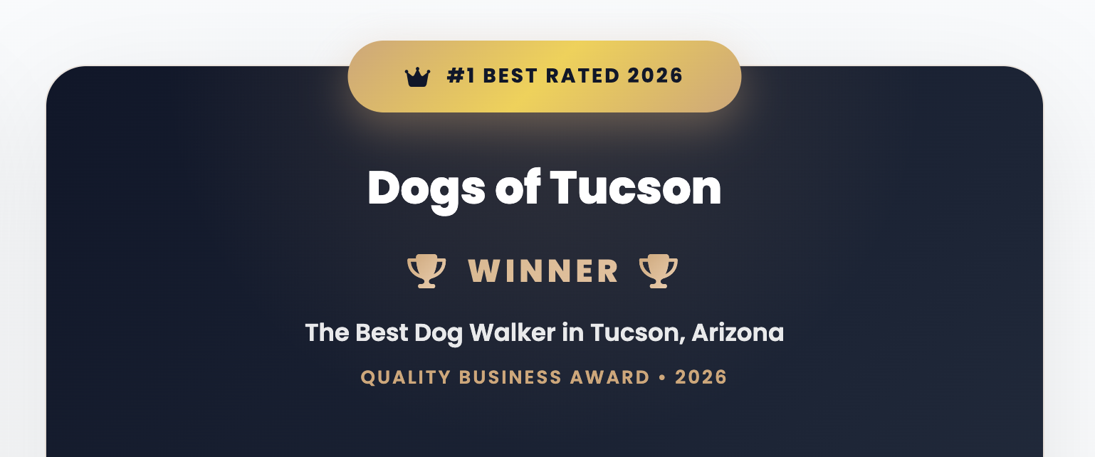 Dogs of Tucson was named the leading Dog Walker in Tucson in 2026 by Quality Business Awards.